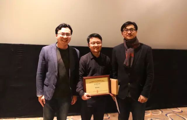 迷影精神奖第一届获奖导演毕赣(中)与奇爱博士(左)、大旗虎皮(右)