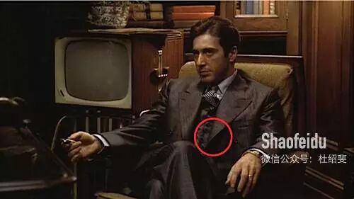 同样,Vito Corleone 的这件衣服的驳头有更明显的翻折弧度,足够宽,体现出其地位的重要性: