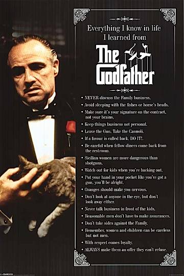 很多人说,「The Godfather 教父」系列是男人的圣经,属于必看的男人片,我深以为然。整部片子当中除了剧情以外,Vito和Michael两代教父从衣着到行为所散发出来的从容,自信,处变不惊的态度,值得一看再看,剧中一些台词,也非常值得玩味: