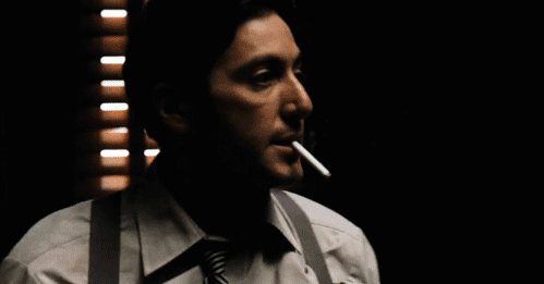 Vito的小儿子Michael Corleone(Al Pacino),虽然衣服还是正装+衬衫+领带+背心的套路,但是能够很明显的感受到Michael和他爹的不同,更年轻,更意气风发: